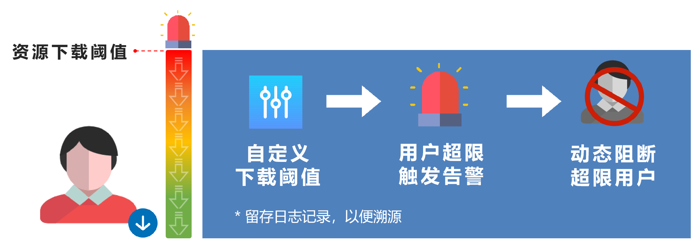 系統(tǒng)可對用戶的訪問請求進行分析,對惡意下載進行限速以及封禁,減少由于惡意用戶的惡意下載帶來的知識產(chǎn)權(quán)風險。